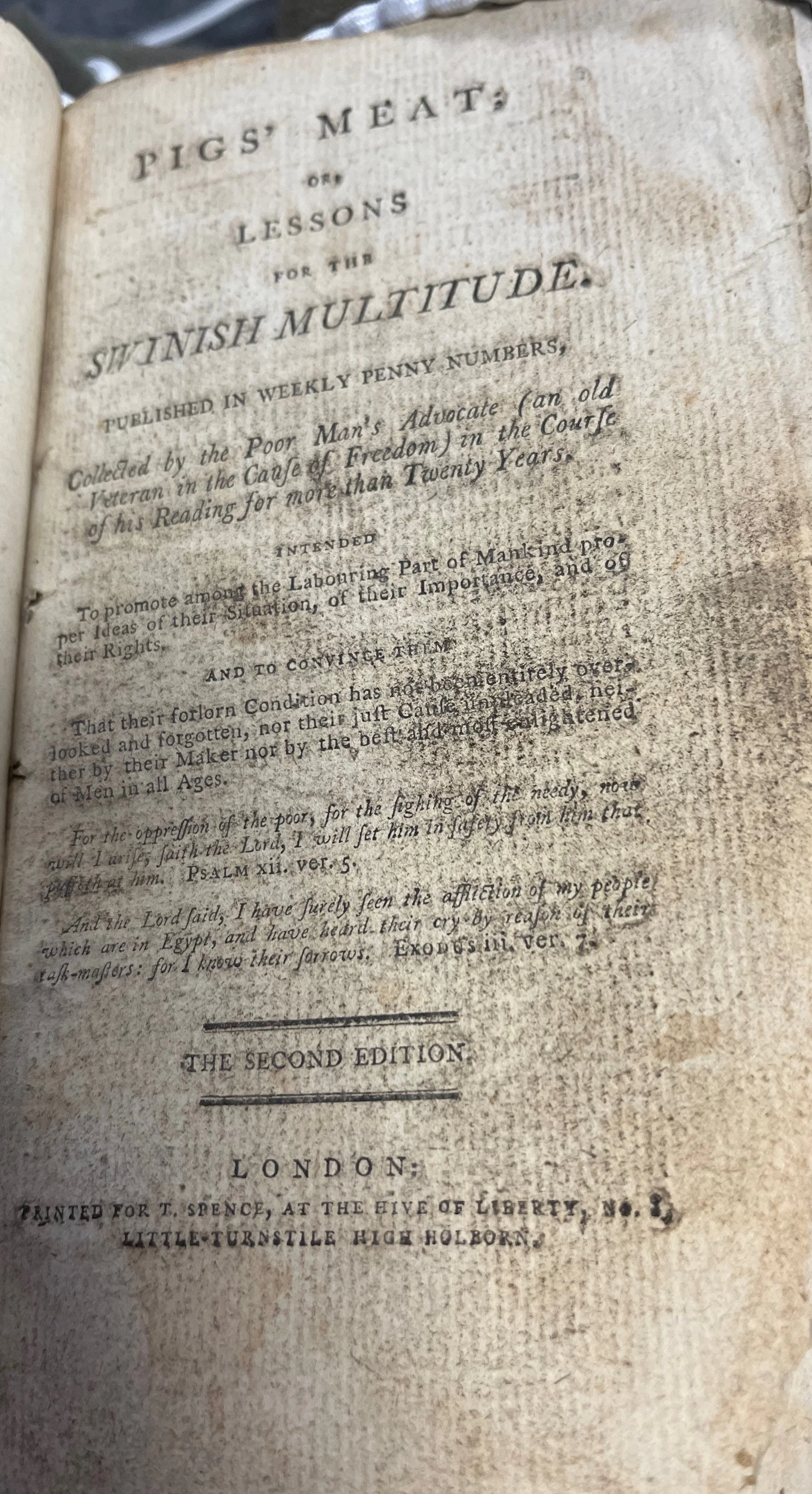 condemn himself to incessant labour. (Thomas Spence, Pigs' Meat. London, 1793, p.