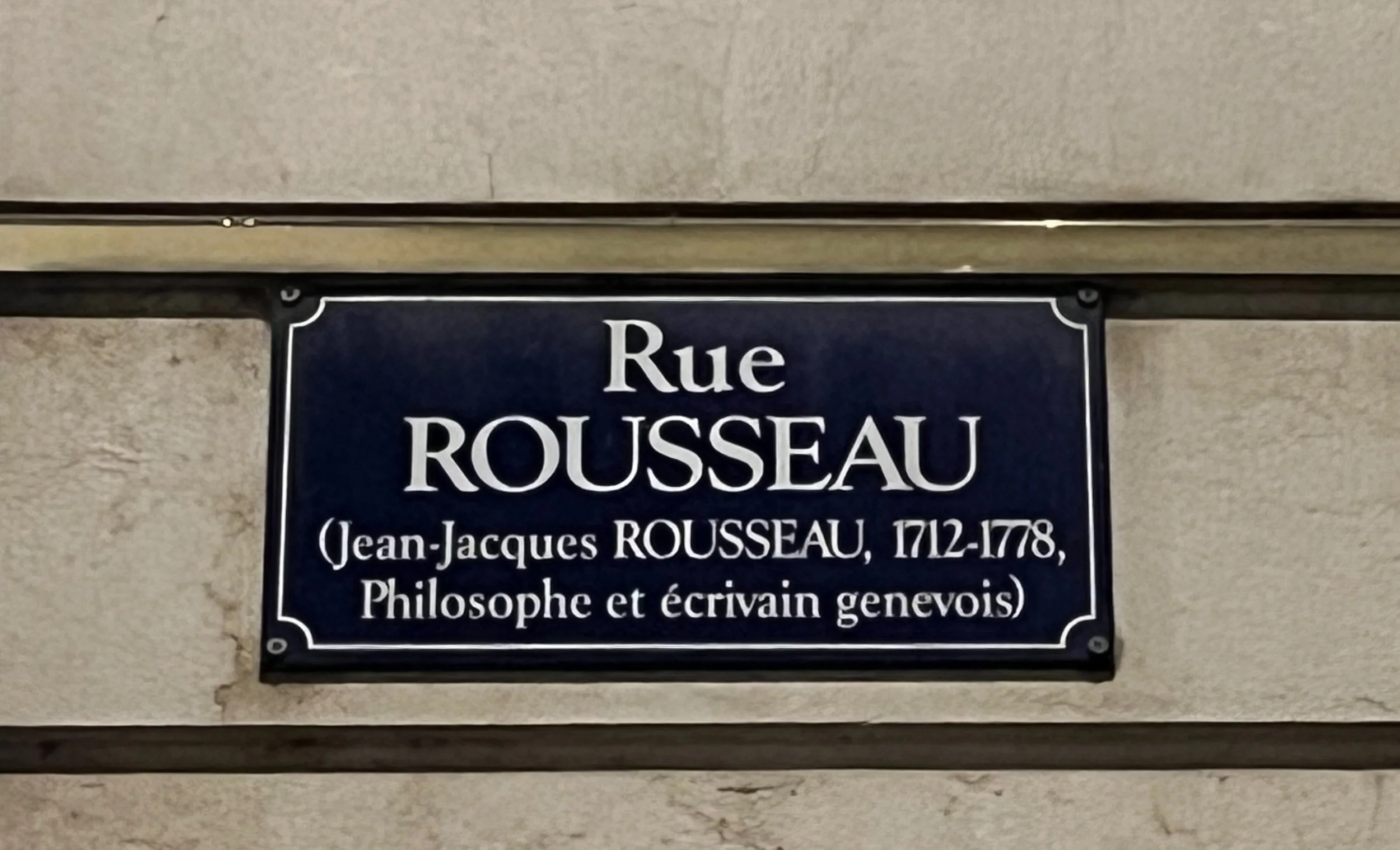 Street sign from Geneva commemorating Jean-Jacques Rousseau. Image by Rachel Hammersley.