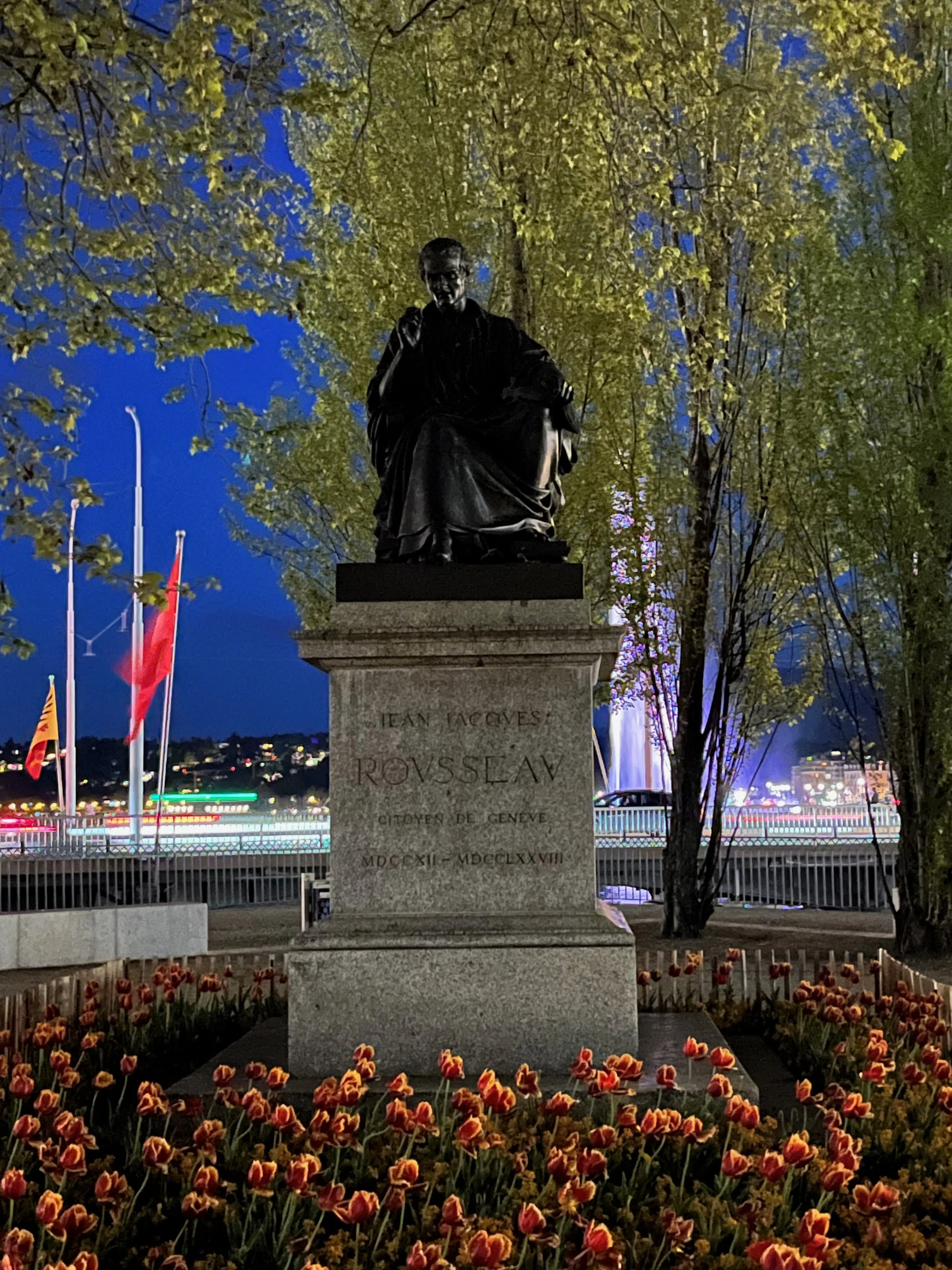 Statue of Jean-Jacques Rousseau in Geneva. Image by Rachel Hammersley, 2025.