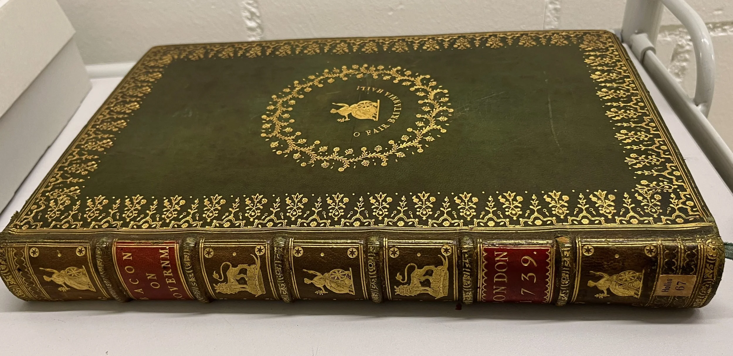 One of the beautifully bound books that Thomas Hollis sent to the Library at Bern. Bern, UB Münstergasse, MUE Hollis 67. Image Rachel Hammersley, 2025.